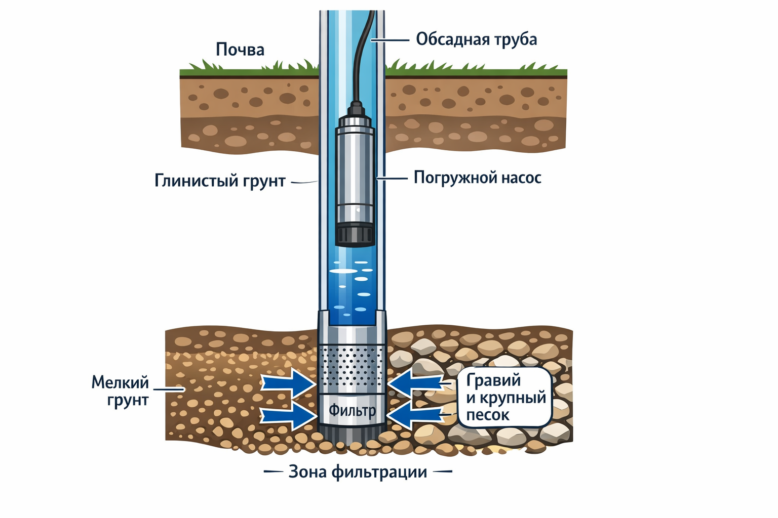 Главная цель процесса — формирование естественного фильтра вокруг водоприемной части.